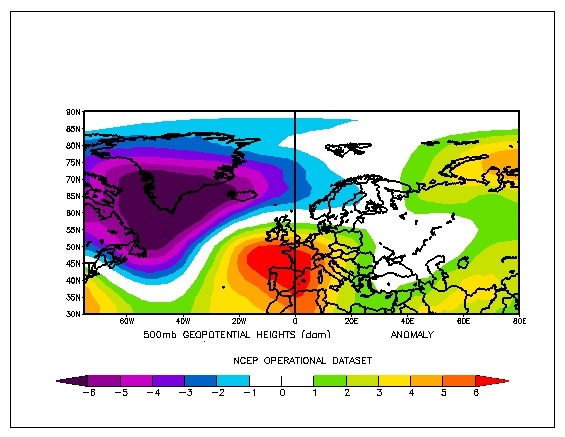 Stattdessen scheinen weiterhin Gemischte Wetterlagen eine größere Rolle zu spielen, wie schon im Winter. Denkbar wäre  - sollte sich wie von mir vermutet verstärkte Tiefdrucktätigkeit im östlichen Atlantik bzw. in einem Streifen südöstlich Island / Grönland / Neufundland bilden - Hochdruckbildung im Bereich Iberische Halbinsel / Biskaya / Westliches Mittelmeer wie hier zu sehen