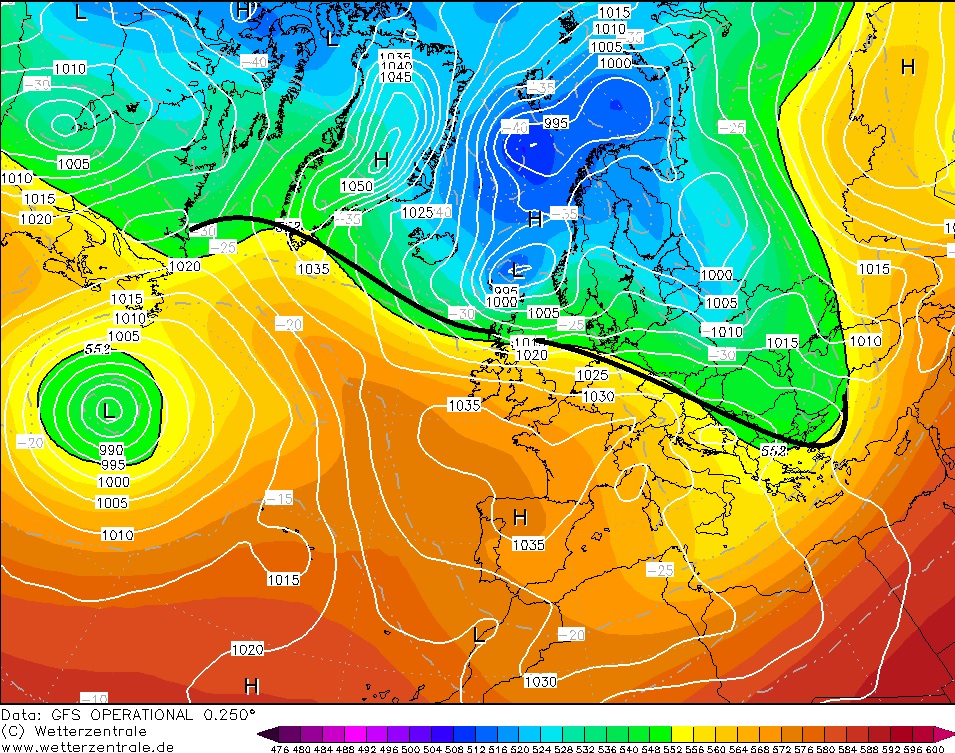 deutlich zu sehen am „abbiegen“ des Jetstream im Grönländisch-Isländischen Bereich