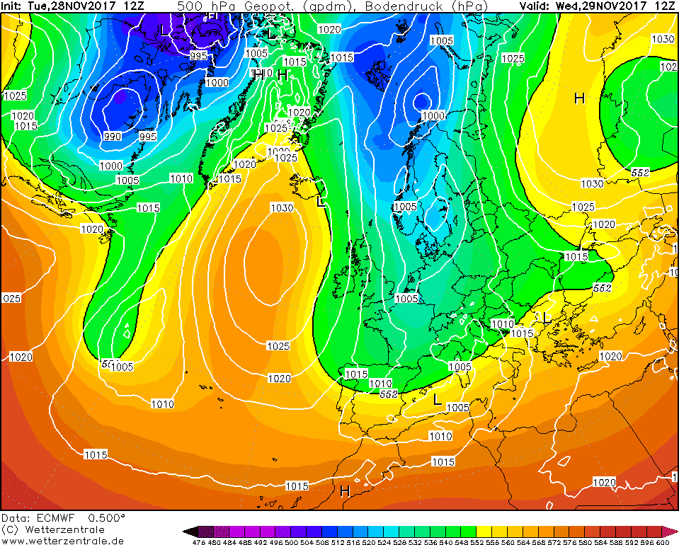 Gegenstand dieser Entwicklungen ist der in letzter Zeit gen Grönland und Island steil aufragende Hochdruck welcher zu einer kräftigen Troglage über Mitteleuropa führte. Daraus resultierte die Advektion kühler bis kalter Luftmassen aus polaren Breiten via Grönland.