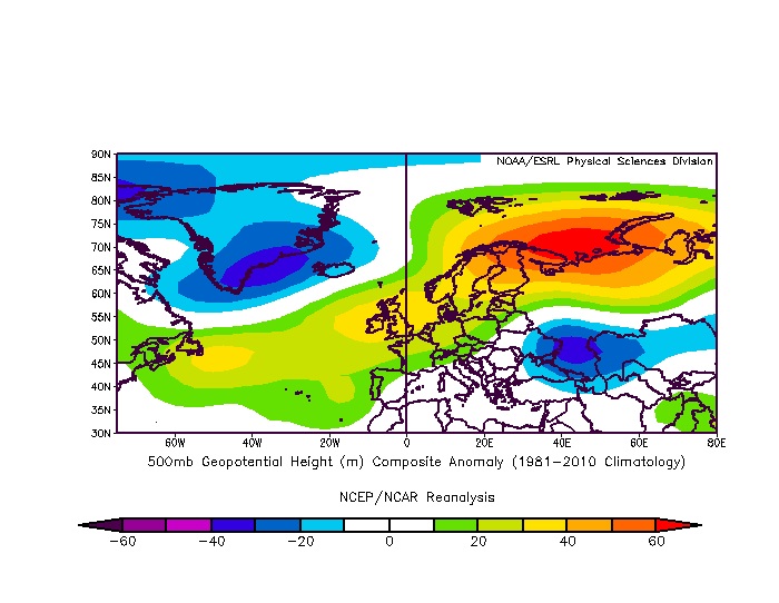 Das Azorenhoch wird - ebenfalls Jahreszeitlich bedingt - stärker, wird jedoch von den Abtropfungsvorgängen aus Grönland - dort wird Tiefdruck weiter dominant bleiben wenngleich sich auch dort etwas stärkerer Druck aufbauen wird - etwas abgeflacht und schickt Ableger in Richtung Nord / Nordwest auf den Atlantik . Anschließend verbleiben diese Ableger meist südöstlich von Island, den Britischen Inseln und Skandinavien . Dort bilden sie quasi eine Brücke bis nach Nordost-Russland hinein, dies könnte sich in folgenden Druckabweichungen manifestieren