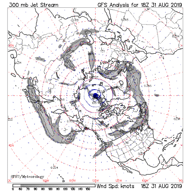 Dies spiegelt sich auch im Jetstream dar, der Polarfront-Jetstream hat sich zwar gut ausbilden können, ist aber über Nordamerika südlich versetzt