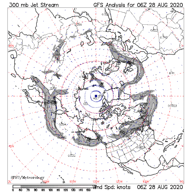 Dies spiegelt sich auch im Jetstream dar, der Polarfront-Jetstream hat sich gut ausbilden können und ist über Nordamerika südlich versetzt